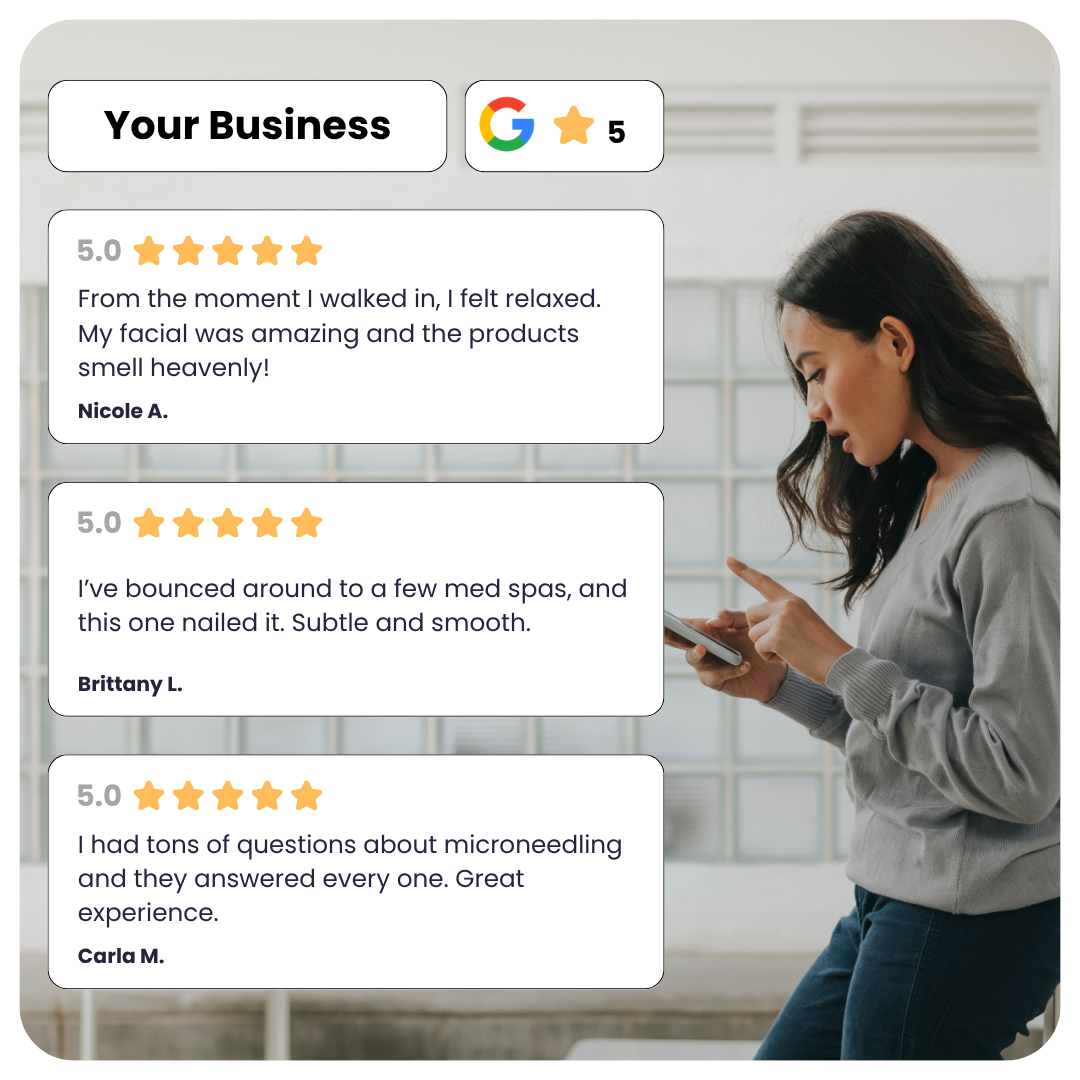 Launch your review campaign in minutes, get 5-star reviews in days, and become the obvious choice in your local market with no effort required.